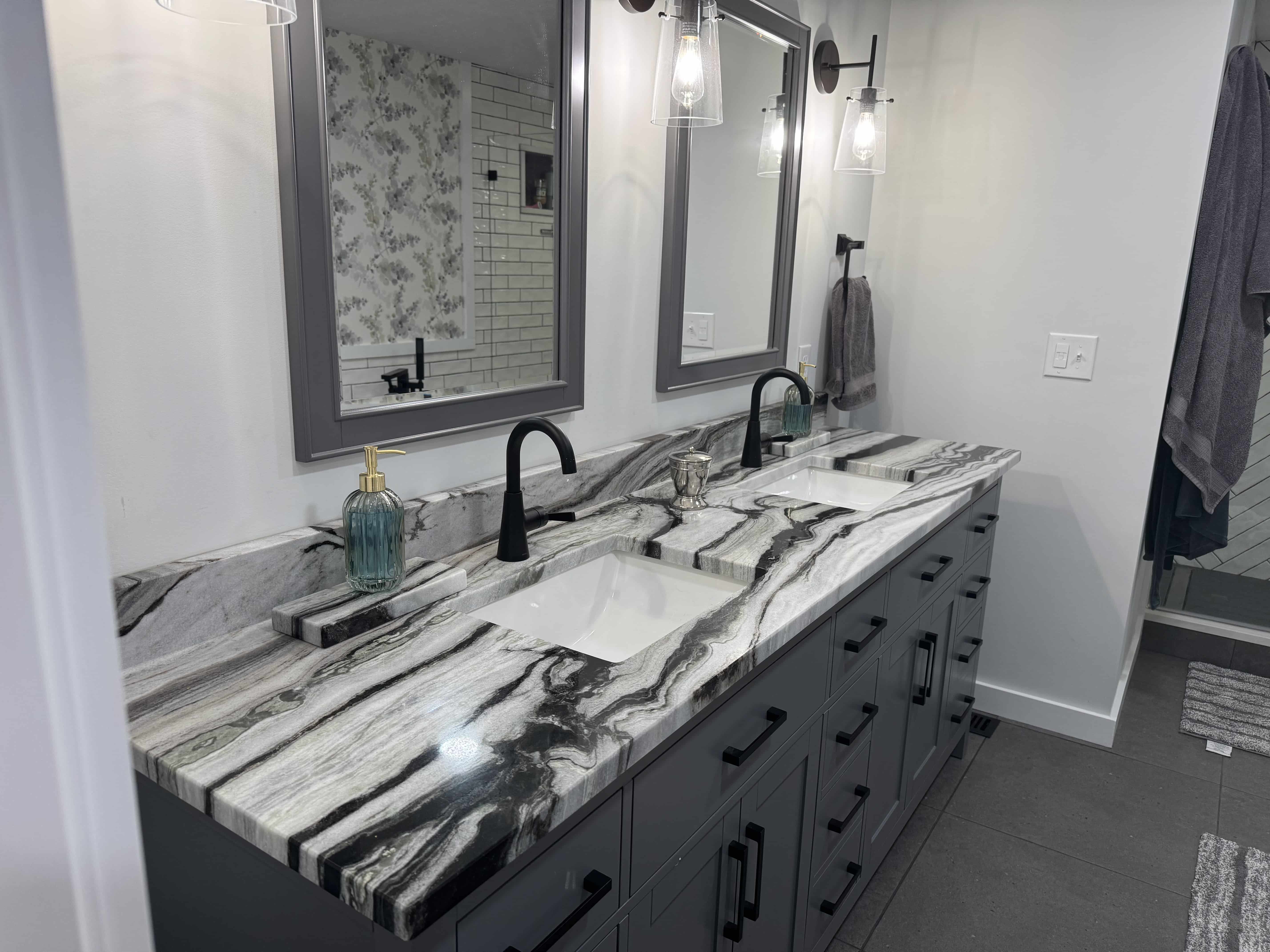 For a quote on bathroom vanities, backsplashes, sinks, and more, contact us at (317) 770-1333.