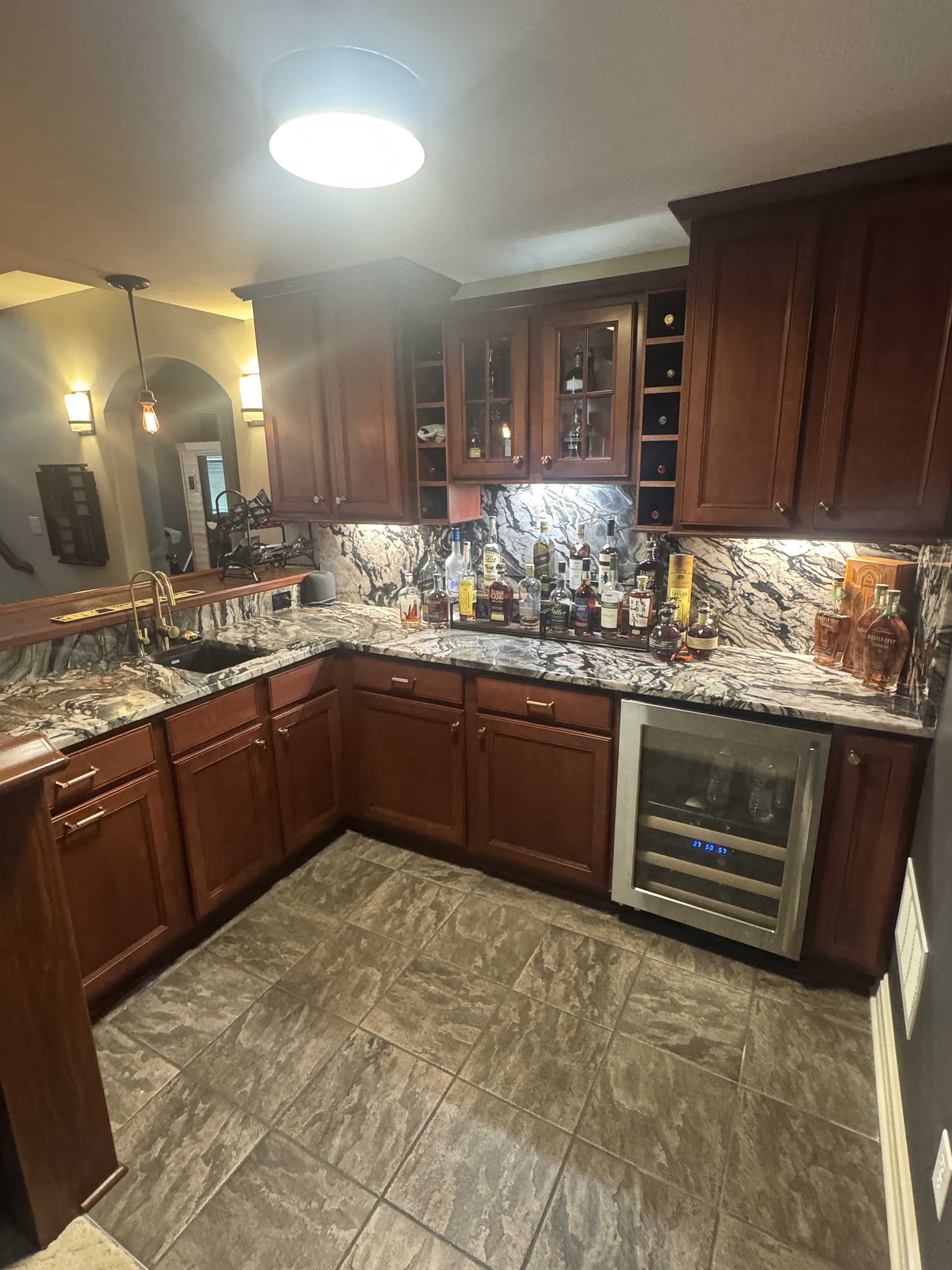 For a spectacular and unforgettable look, complement your countertop with a stone backsplash and flooring. At Stonesmiths, we can help with a variety of projects in the kitchen and beyond — including quality sink installations, glass and stone fabrication for bathrooms, bars, outdoor living spaces, and commercial spaces. We even produce custom furniture!